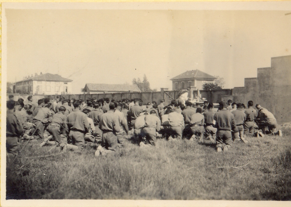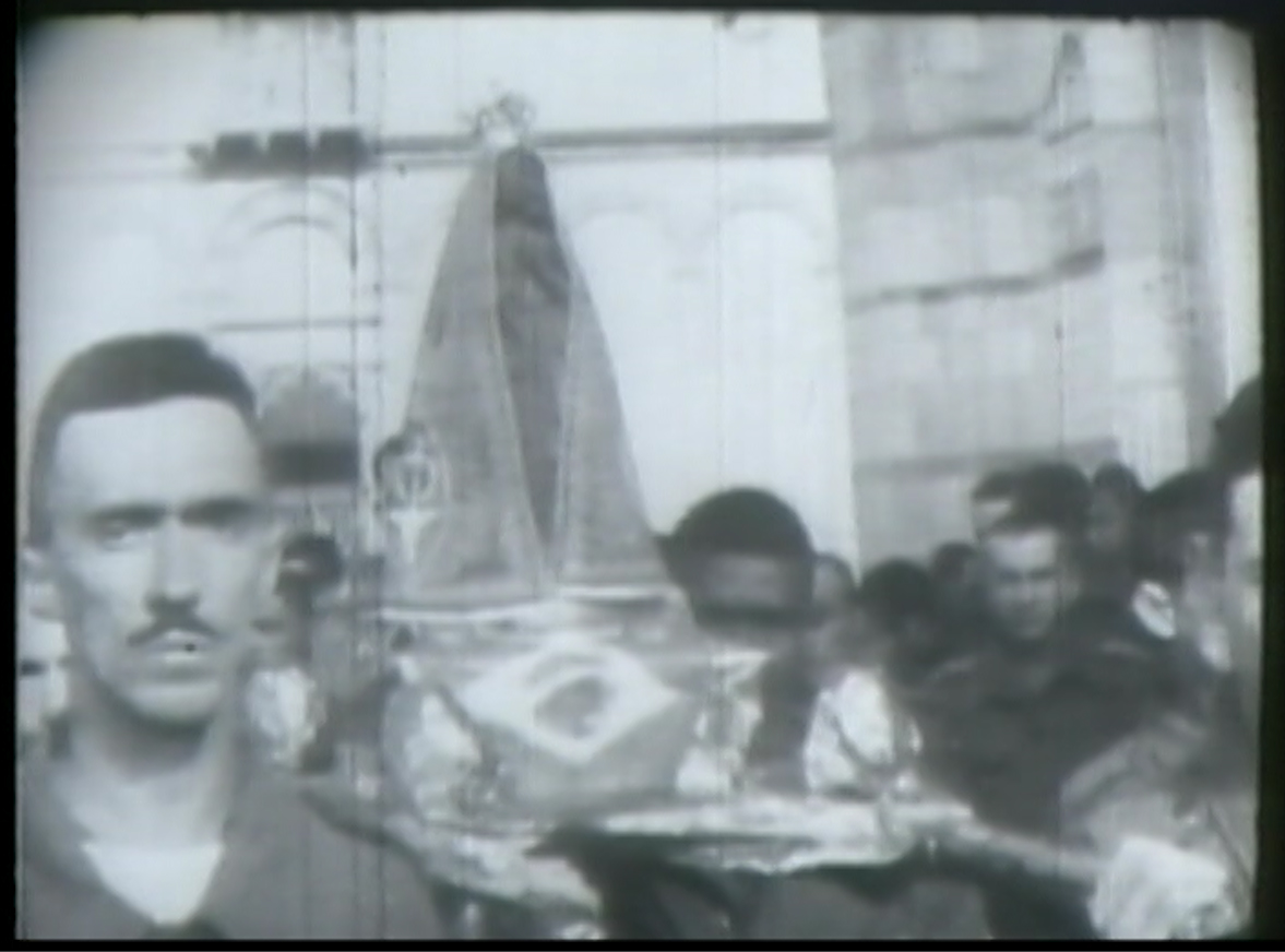 Mal desembarcado o 2º Escalão, eram cerca de 10.000 homens, foi realizada em Pisa uma procissão belíssima. Os soldados transportavam uma imagem de Nossa de Senhora da Aparecida, cheios de unção, cantando cânticos aprendidos na infância em suas paróquias do interior. Os italianos assistiram, extasiados, àquele desfile triunfal de soldados desarmados, cujo troféu era a imagem daquela Virgem Negra do Brasil. Nunca, jamais, a península italiana, há milênios invadida por tropa africanas, bárbaras, napoleônicas, germânicas, assistira a um desfile como aquele, em que oficiais e soldados, irmanados pela mesma fé católica, davam um exemplo magnífico de religiosidade.[4]