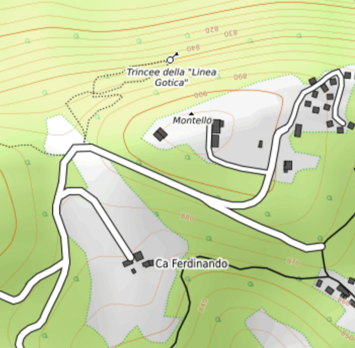 O solo italiano guarda várias surpresas ao aficionado pela memória da FEB. À retaguarda de Montello, elevação dominante na região vizinha à cidade de Montese, ainda existe a linha de trincheiras do sistema defensivo germânico na Linha Genghis Khan.