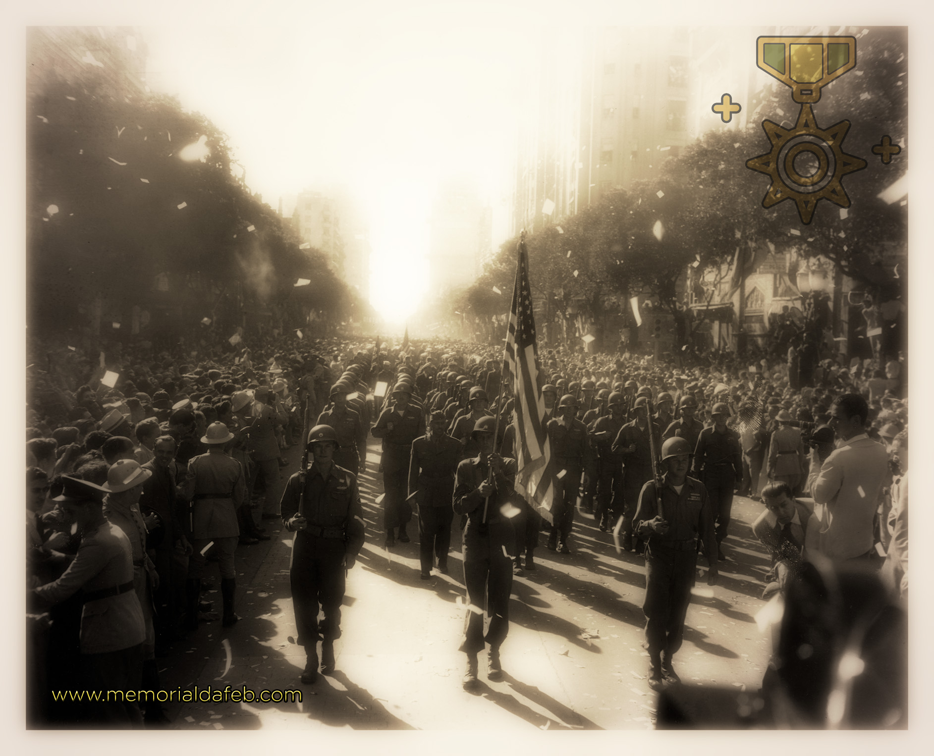 Este é um trecho da correspondência enviada pelo Sgt Wilbur G. Vanghan, da 10ª Divisão de Montanha, aos seus pais na Califórnia, narrando o desfile do 1º Escalão da FEB no RJ, em 18 de setembro de 1945: verdadeira apoteose na Cidade Maravilhosa.