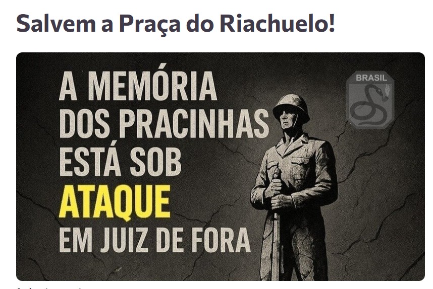 Participe do nosso abaixo-assinado em defesa do patrimônio histórico da FEB na Praça do Riachuelo (Juiz de Fora).